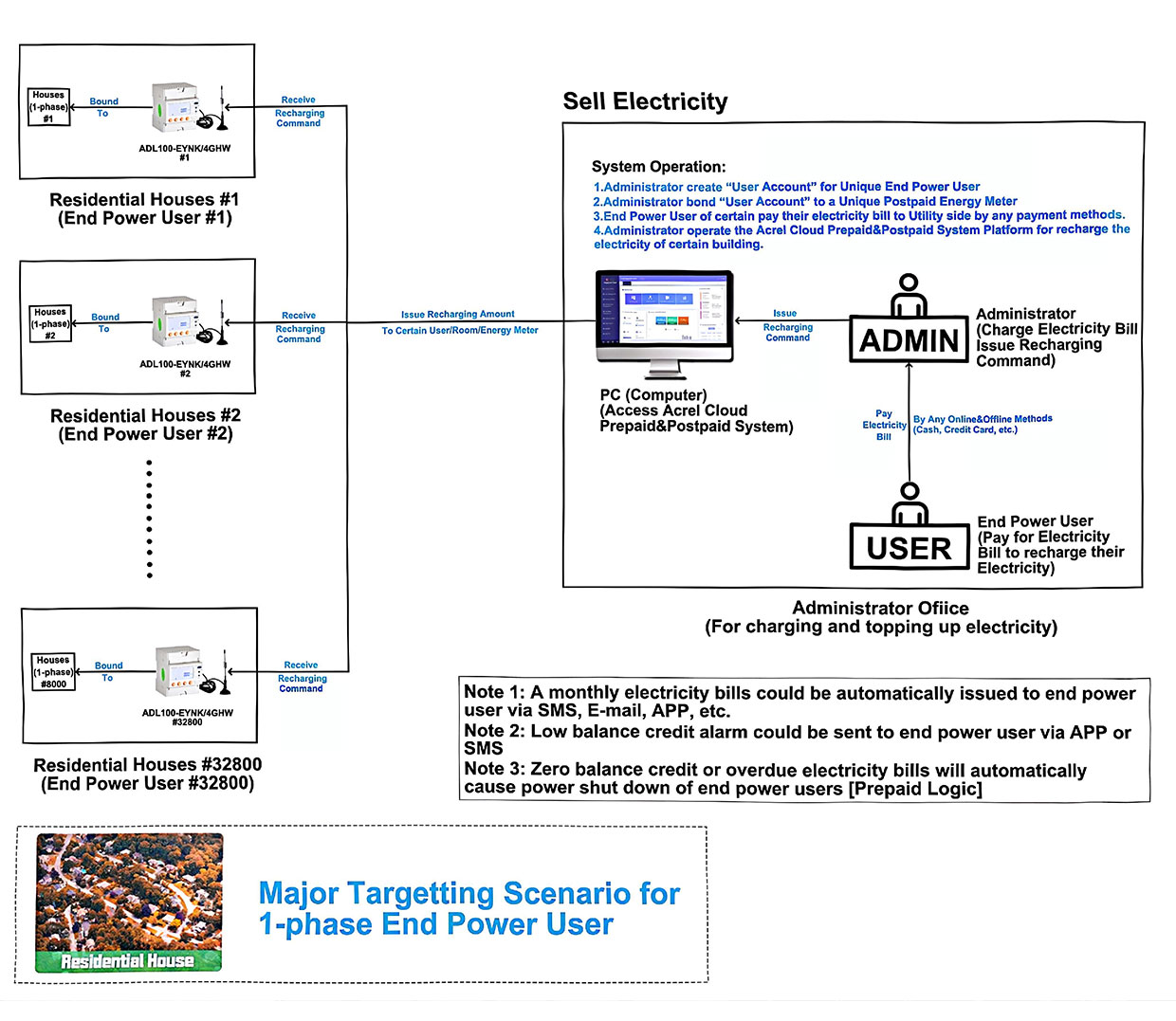 Acrel sistem pengebilan prabayar/pasca bayar Acrel dibina tujuan untuk asrama sekolah, pusat membeli-belah, taman perindustrian dan estet kediaman. Senibina tiga lapisan bermula dengan ADL100-EY (fasa tunggal) dan ADL300-EY (tiga fasa) meter pintar; Setiap mengintegrasikan 100 relay magnet, menyokong DL/T 645 dan Modbus-RTU, dan rekod KWh dengan ketepatan Kelas 1.