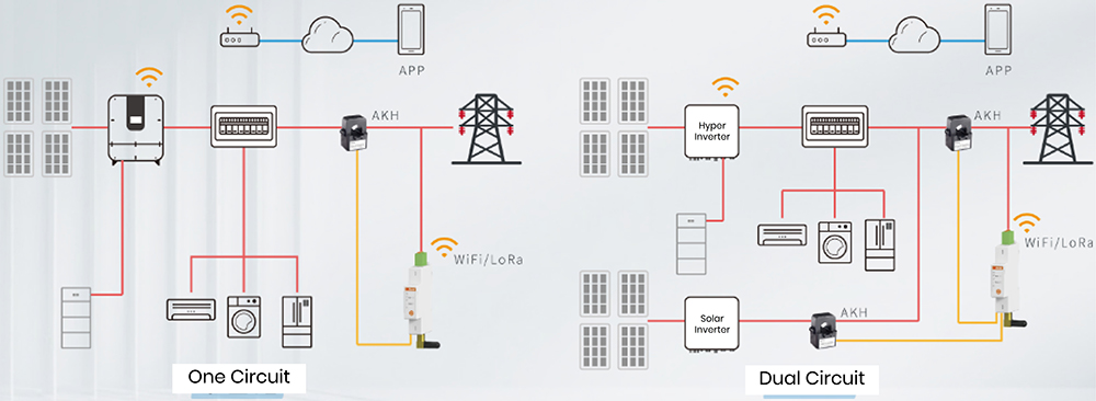 Seni bina ini sesuai untuk bangunan kediaman berbilang tingkat, persekitaran pemasangan yang kompleks dan konfigurasi meter-ke-inverter jarak jauh di mana sambungan wayarles konvensional terbukti tidak boleh dipercayai.