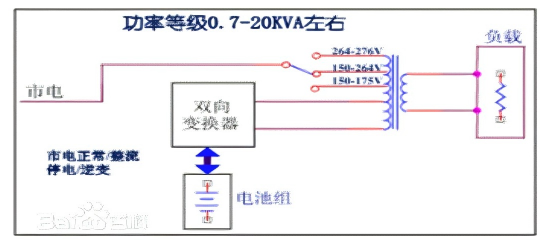 Semasa operasi utiliti biasa, ia membekalkan kuasa utiliti yang lebih baik untuk memuatkan melalui peraturan pengubah menukar paip pintar, manakala penyongsang berfungsi dalam mod terbalik untuk mengecas bateri. Semasa gangguan, beban dikuasakan sepenuhnya oleh tenaga bateri melalui penyongsang. Penukar dua arah ini berfungsi sebagai kedua-dua penyongsang dan pengecas.