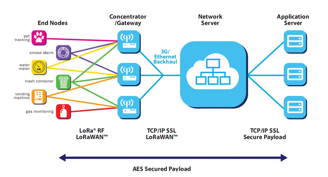 Lora menyokong komunikasi point-to-point dan rangkaian bintang, dan menyedari pengumpulan berpusat dan penghantaran data dari pelbagai nod melalui peranti gerbang.